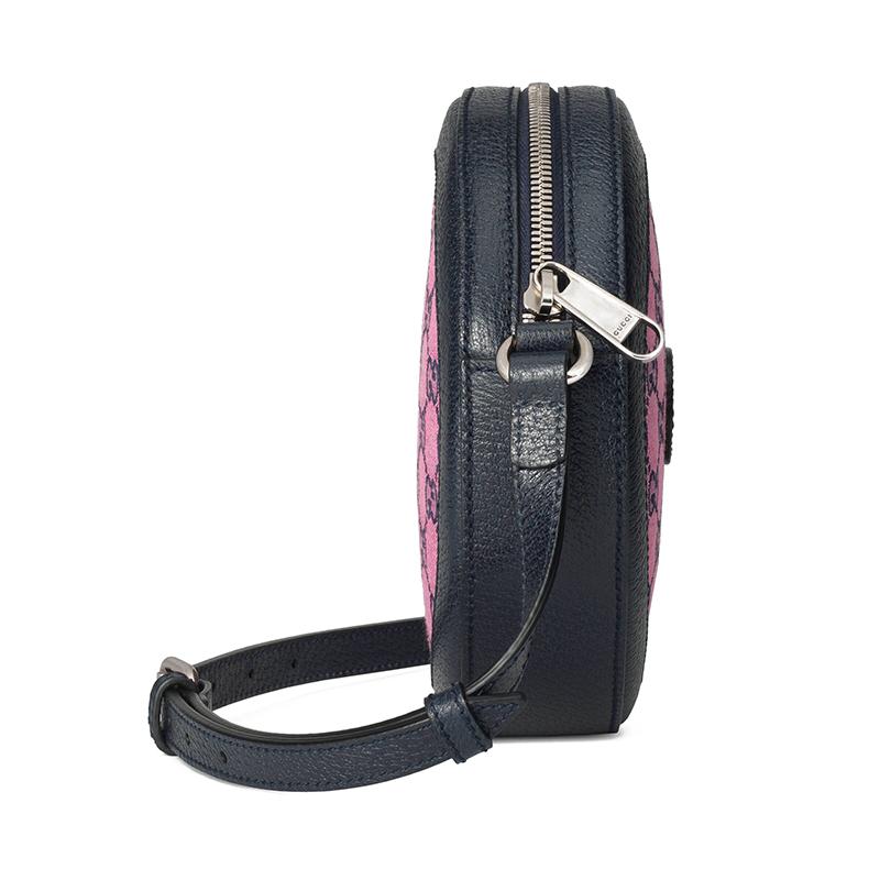 【包稅】GUCCI/古馳2021春夏新款GG Multicolor系列女士粉色和藍色GG帆布可調節肩帶圓形單肩包6588252UZAN5279