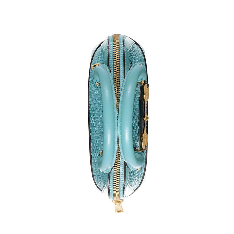 • 【包税】GUCCI/古驰 2021春夏新款 Horsebit 1955系列 女士迷你淡蓝色稻草织物手提斜挎单肩包6407162VAAG4977