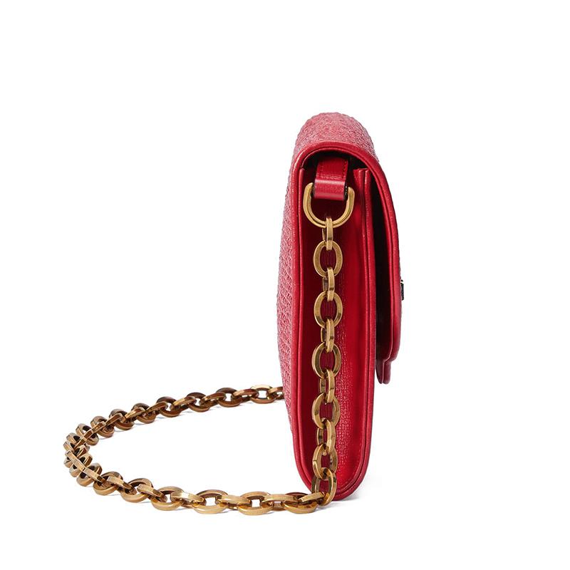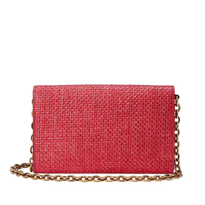 精致的色彩和浪漫的材料相结合,在梦幻般的氛围中笼罩着整个系列。Maison钟爱的系列之一Gucci Horsebit 1955系列的宇宙充满了百搭混合轮廓。这款肩背包采用珊瑚纤维织物制成,具有带纹理的稻草效果,眨眼间就变成了手拿包。