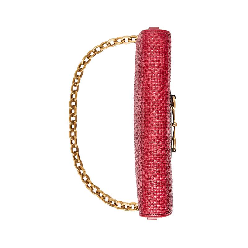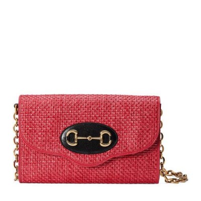 • 【包税】GUCCI/古驰 2021春夏新款 Horsebit 1955系列 女士小号珊瑚草稻草织物单肩斜挎手拿包6556672VAAX6569
