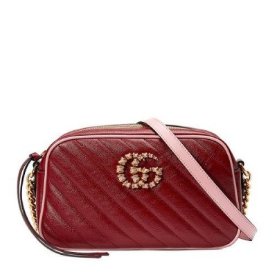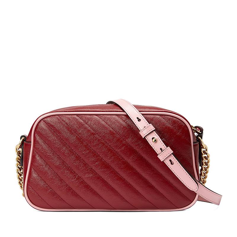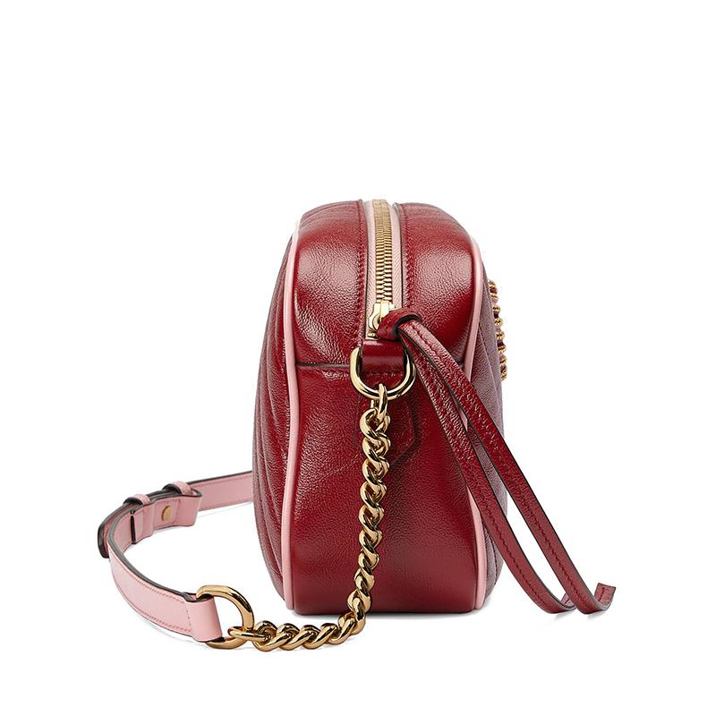 【包稅】GUCCI/古馳2021春夏新款GG Marmont系列女士小號深紅色和淡粉色皮革拉鍊珐琅雙G單肩斜挎手提包4476321X5EG6476
