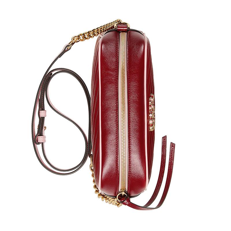 【包税】GUCCI/古驰 2021春夏新款 GG Marmont系列 女士小号深红色和淡粉色皮革拉链珐琅双G单肩斜挎手提包4476321X5EG6476