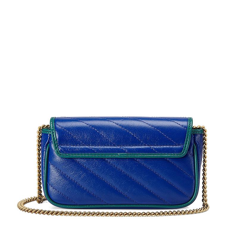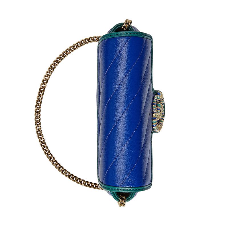 首頁 > 腕表 > 古馳 > 【包稅】GUCCI/古馳2021春夏新款GG Marmont系列女士超迷你藍色和綠松石皮革翻蓋珐琅雙G單肩斜挎手提包5749691X5EG8382