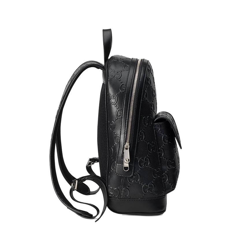 【包稅】GUCCI/古馳21新款GG embossé系列男女同款黑色雙G壓紋皮革背包雙肩包6585791W3BN1000