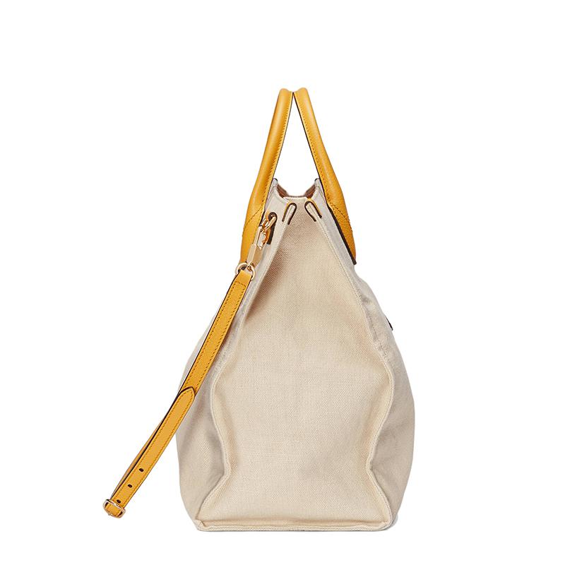 【包税】GUCCI/古驰 21春夏新款pliable系列 大号米色亚麻帆布红绿条纹细节黄色皮革手柄单肩手提包‎‎6588762U2AG8684