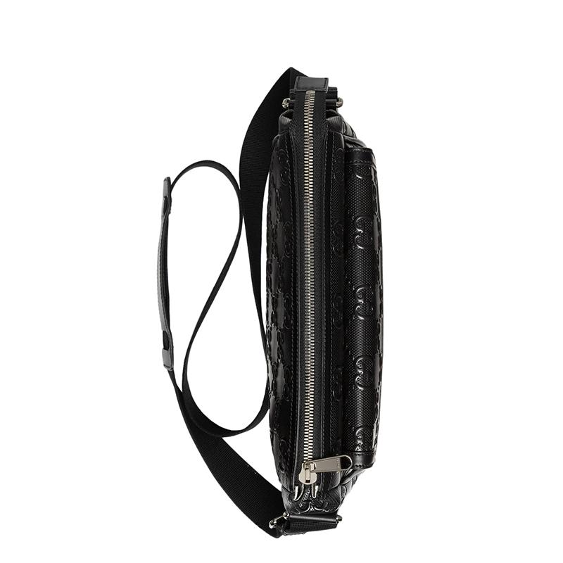 【包稅】GUCCI/古馳21新款GG embossé系列男士黑色雙G壓紋皮革單肩斜挎郵差包6585651W3CN1000