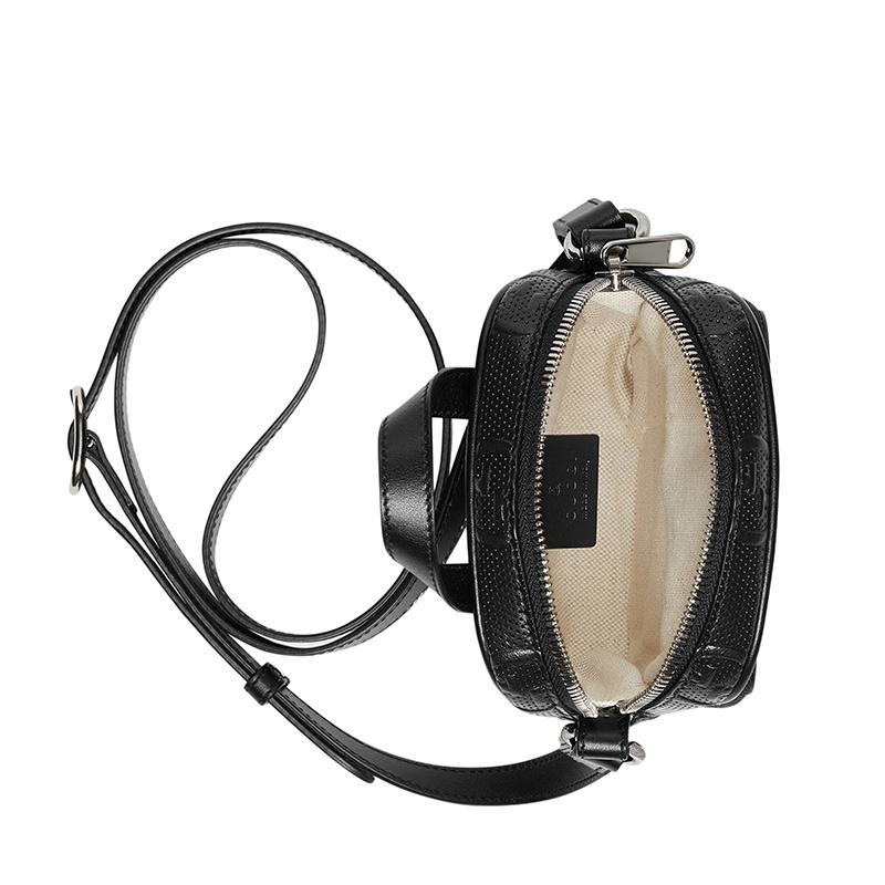 这款迷你包采用Opening系列新亮相的GG图案进行了全新诠释。GG皮革以其柔韧性和略带光泽的外观而著称。它具有质感,在黑色穿孔皮革底上凸显了Maison品牌的浮雕符号。