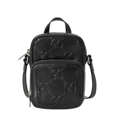 【包税】GUCCI/古驰 21春夏新款GG embossé系列 男女同款迷你黑色双G压纹皮革拉链单肩斜挎手机包6585531W3AN1000