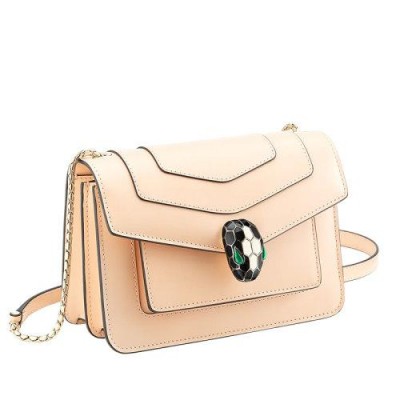 【包稅】BVLGARI/寶格麗2021春夏新款SERPENTI FOREVER系列女士小號桃紅色小牛皮黑白瑪瑙孔雀石眼睛經典扣單肩斜挎包290541
