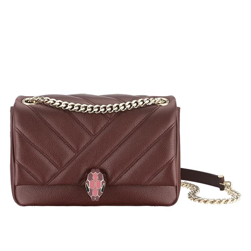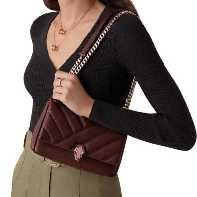 【包税】BVLGARI/宝格丽 21春夏新款SERPENTI CABOCHON系列 女士小号酒红色粒面小牛皮单肩斜挎包290651