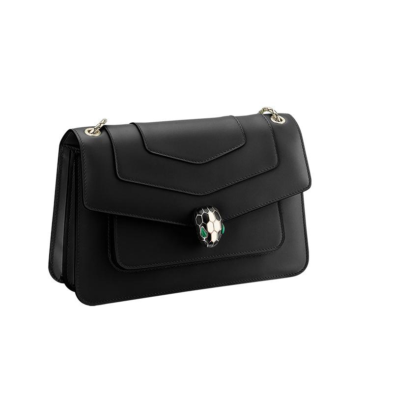 【包税】 BVLGARI/宝格丽 21春夏新款SERPENTI FOREVER系列 女士黑色小牛皮珐琅扣斜挎单肩包290264
