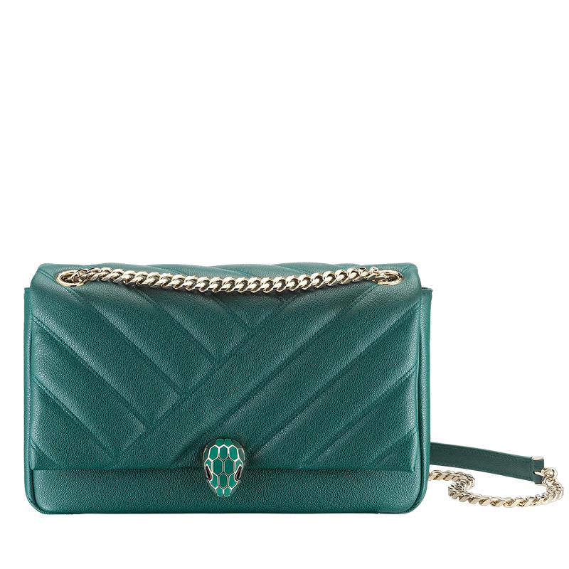 【包稅】BVLGARI/寶格麗21春夏新款Serpenti Cabochon系列森林綠寶石綠色柔軟縫粒面小牛皮女士斜挎單肩包290649