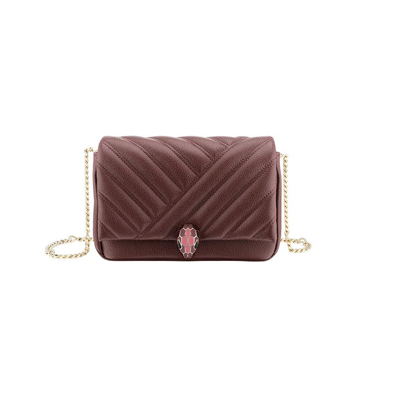 【包稅】BVLGARI/寶格麗21春夏新款SERPENTI FOREVER系列女士迷你波爾多紅小牛皮珐琅扣斜挎單肩包290648