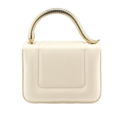 【包税】预售一个月 BVLGARI/宝格丽  MARY KATRANTZOU联名灵蛇蜕变 女士白色柔软纳帕皮Serpenti金色黄铜表扣水晶蛇头单肩斜挎手提包291074