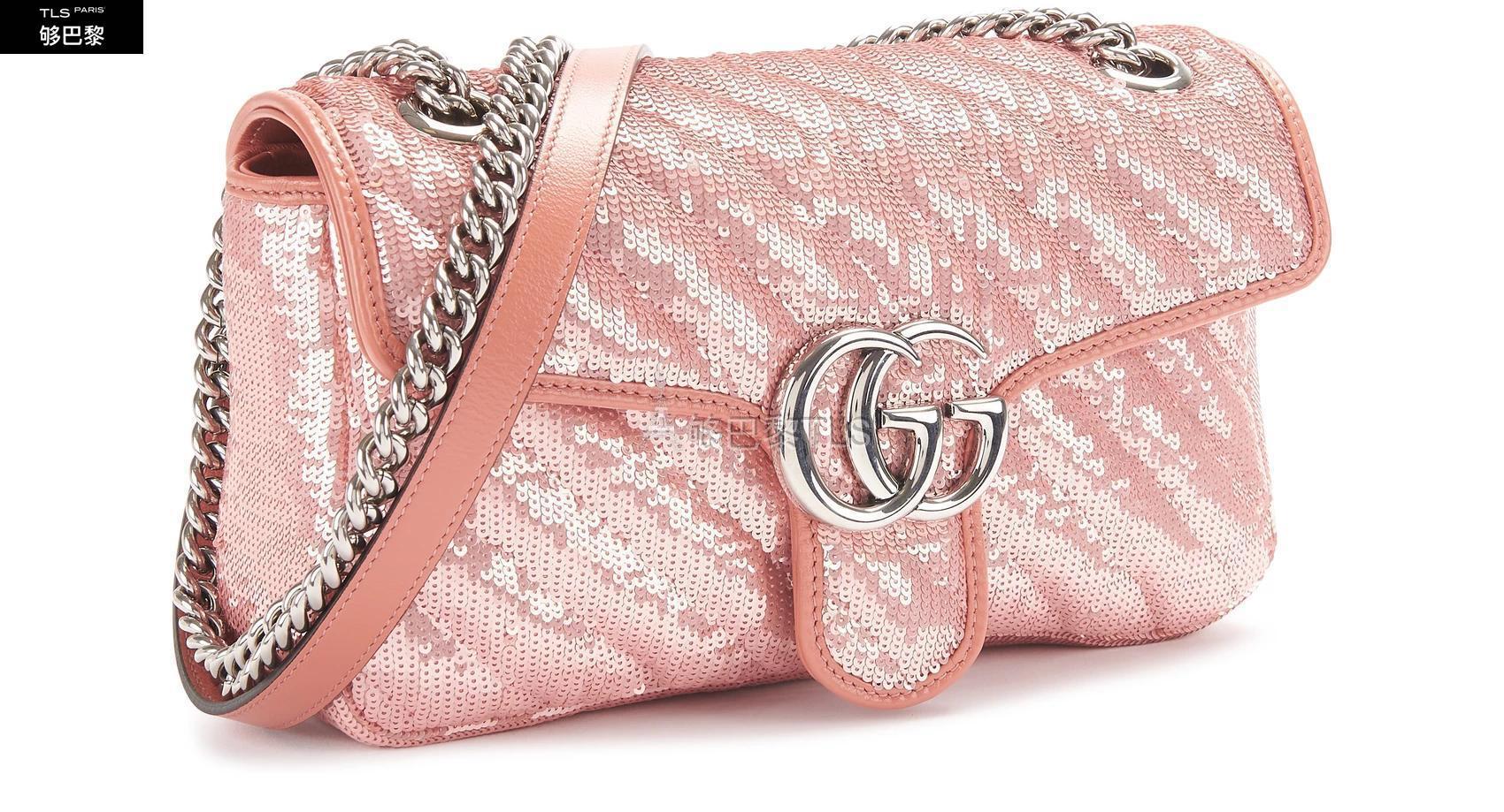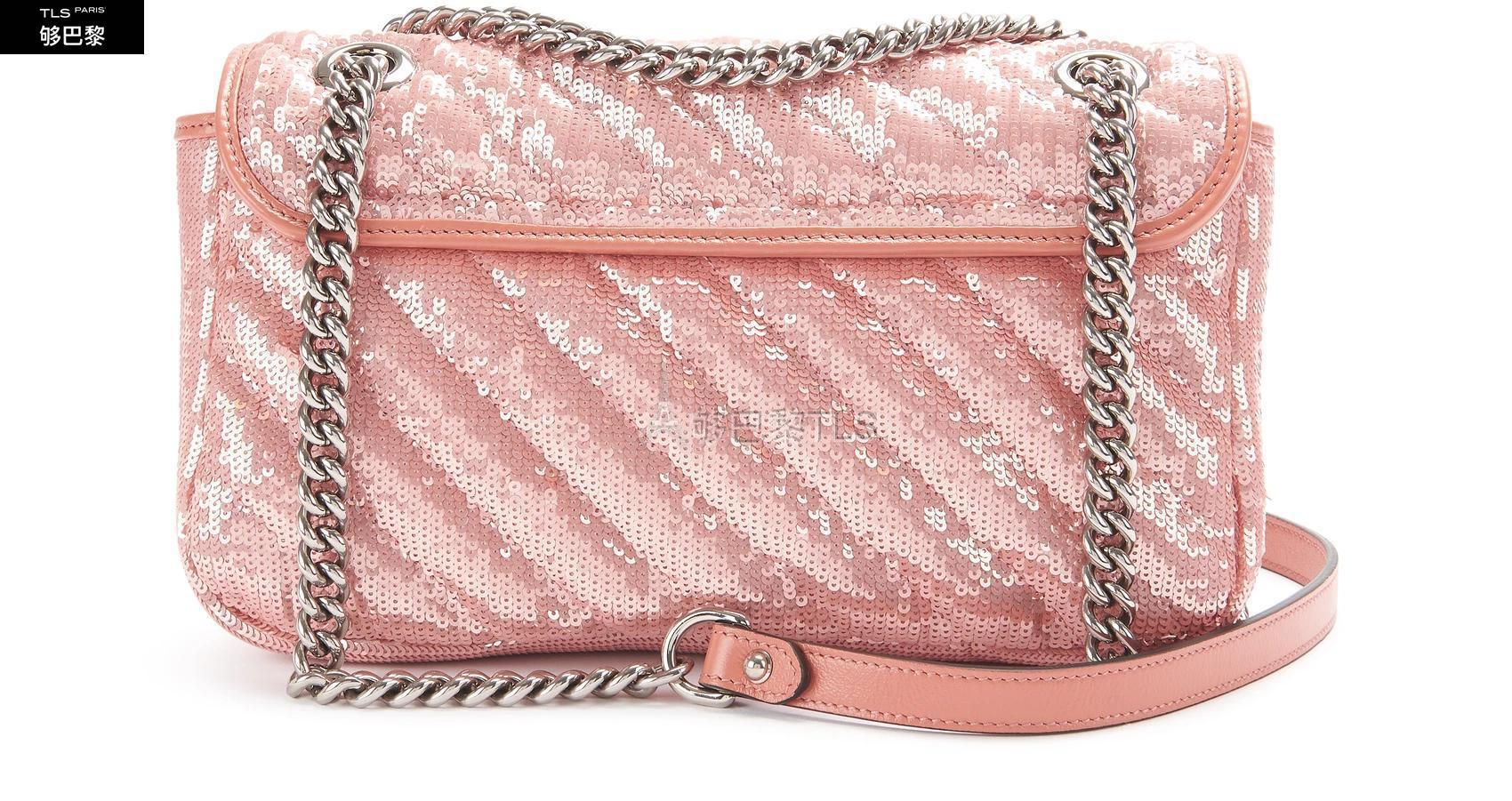【包郵包稅】GUCCI古馳21年春夏女士單肩包GG Marmont迷你亮片手袋GUC8VZ24PINZZZZZ00預定商品1-3周發貨