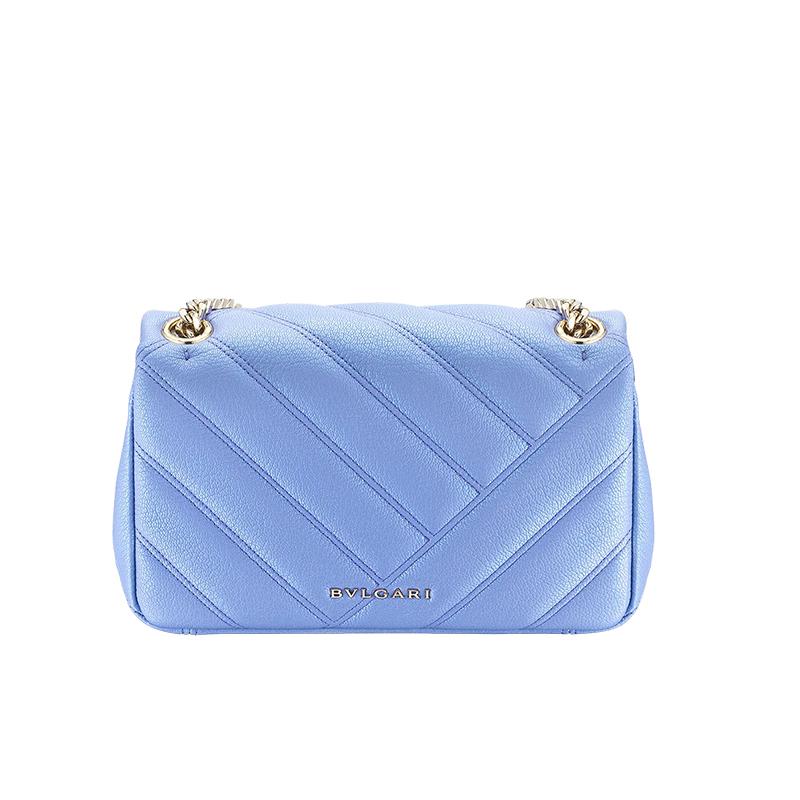 Serpenti Cabochon单肩包已准备好以实用和精致的设计进入Serpenti系列,具有独特的对比色,并带有独特的轻缝图案和大胆的金属细节。这款凸圆形紫水晶淡紫色山羊皮手袋的珍珠缝形几何形状受到凸圆形切割宝石起伏不平的表面的启发,为袋身赋予了更大的柔软度。Serpenti诱人的金色黄铜,黑色珐琅和淡紫色的薰衣草紫水晶表扣,on玛瑙眼睛。理想的配饰,适合白天穿着,并配以称为“ gourmette”的厚滑链装饰,并配有舒适的皮革肩带,以提高多功能性。带有折角隔层的小型款,一个拉链口袋和一个开放口袋。内有Bvlgari徽标的金属牌匾。尺寸:22.5 x 15 x 10厘米