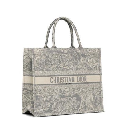 【包稅】DIOR/迪奧21秋冬新款BOOK系列女士灰色Toile de Jouy圖案反向刺繡單肩手提托特包M1286ZRGO_M932