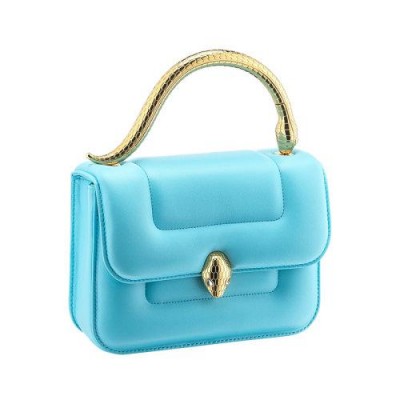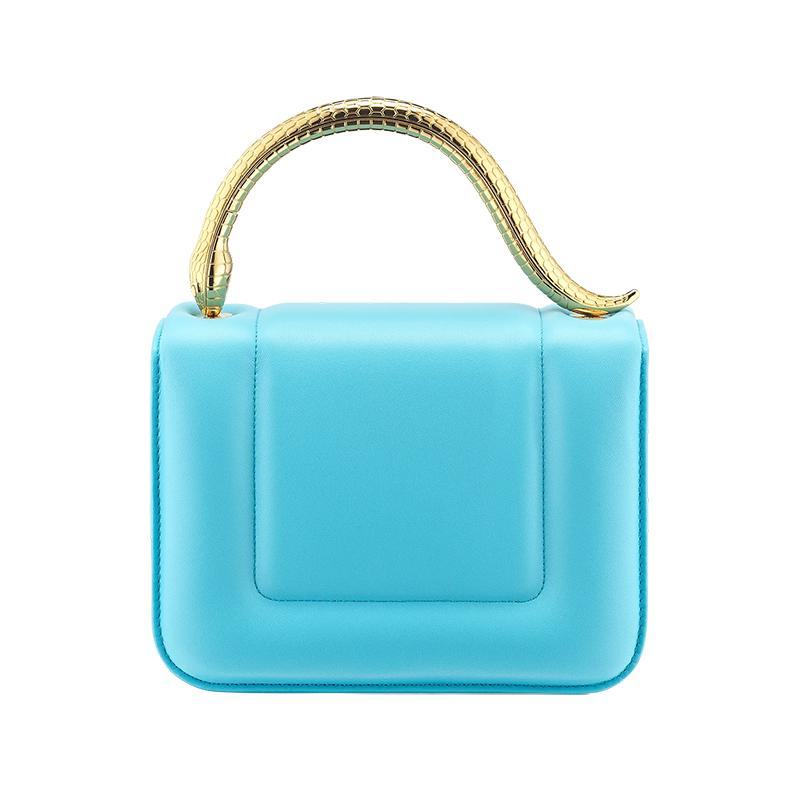 【包税】预售一个月 BVLGARI/宝格丽 MARY KATRANTZOU联名灵蛇蜕变 女士蓝色柔软纳帕皮Serpenti金色黄铜表扣水晶蛇头单肩斜挎手提包291070