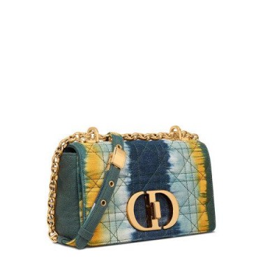【包税】DIOR/迪奥 2021春夏新款 CARO系列 女士小号五彩绿水洗牛仔布翻盖CD扣链条单肩斜挎手提包M9241UJAL_M042