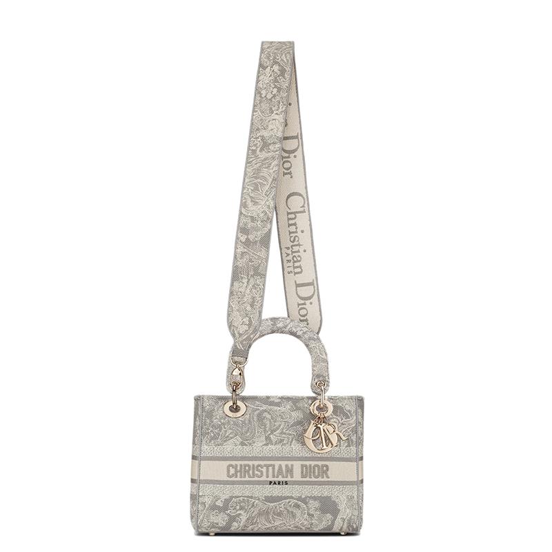 【包税】DIOR/迪奥 21秋冬新款LADY D-LITE系列 女士中号灰色Toile de Jouy图案反向刺绣单肩斜挎手提戴妃包M0565ORGO_M932