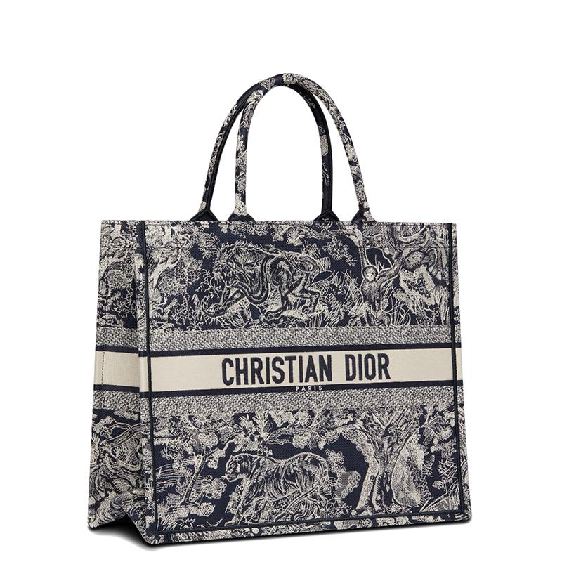 Dior Book Tote是Christian Dior艺术总监Maria Grazia Chiuri签名的原创作品,如今已成为经典之作。设计包含您所有的日常必需品,并完全绣有蓝色Toile de Jouy反向图案,通过反向配色方案降低了房屋的标志性图案。正面的CHRISTIAN DIOR签名增强了该型号。这款手提袋是Dior专有技术的典范,可以手提或放在肩上。