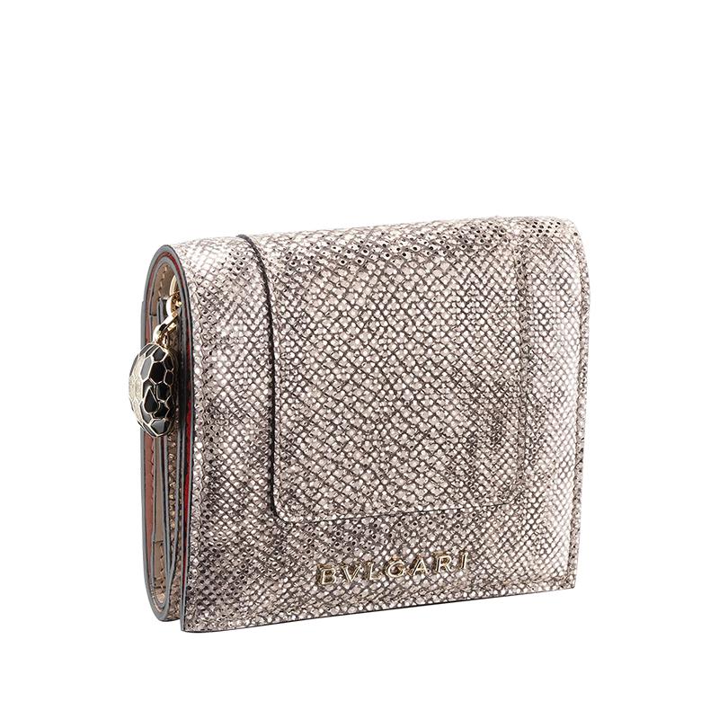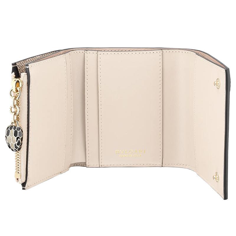 【包稅】BVLGARI/寶格麗2021春夏新款SERPENTI FOREVER系列女士米色水蛇皮黑色珐琅蛇頭拉鍊錢包288085