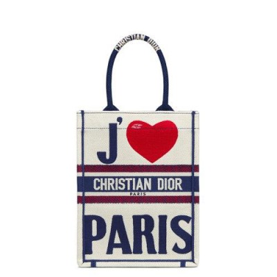 Dior Book Tote是Christian Dior艺术总监Maria Grazia Chiuri签名的原创作品,如今已成为经典之作。这款垂直的白色模特完全绣有I Love Paris彩色主题,而CHRISTIAN DIOR签名则改善了正面。这款垂直Dior Book手提袋可以手工携带,这是Maison专有技术的典范。
