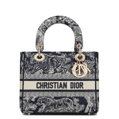 【包税】DIOR/迪奥 21秋冬新款LADY D-LITE系列 女士中号蓝色Toile de Jouy反向刺绣单肩斜挎手提戴妃包M0565ORGO_M928