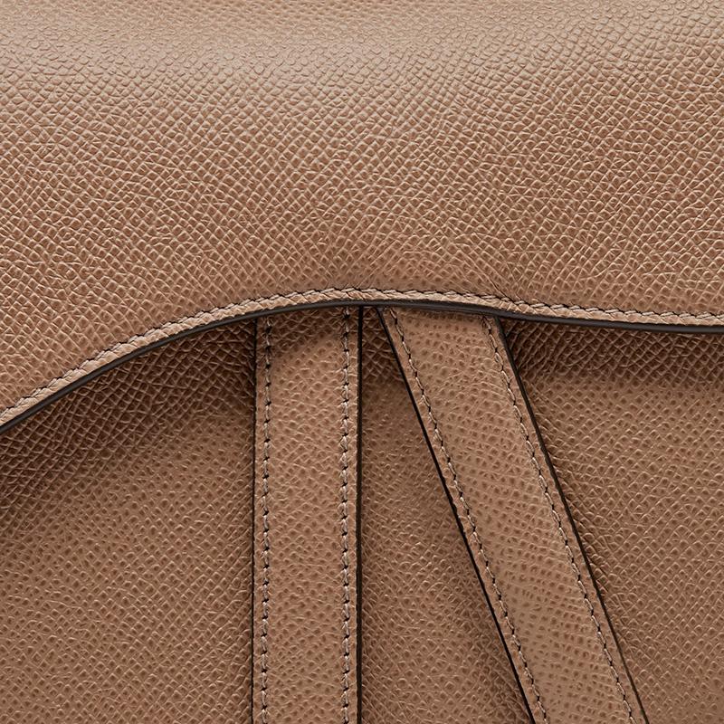 标志性的马鞍包由Maria Grazia Chiuri带来。这个传奇的设计带有一个带磁性D型马cl扣的鞍形翻盖,以及手柄两侧的CD签名。灰褐色的粒面小牛皮在陈旧的金色金属中得到了增强。该马鞍包既可以手提也可以背在肩上,并可以使用不同的肩带进行个性化设置。