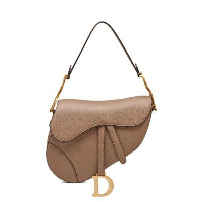 【包税】DIOR/迪奥 21秋冬新款SADDLE系列 女士灰褐色粒面小牛皮金色D形扣装饰翻盖单肩手提马鞍包M0446CBAA_M45M