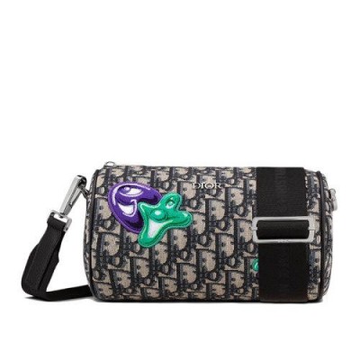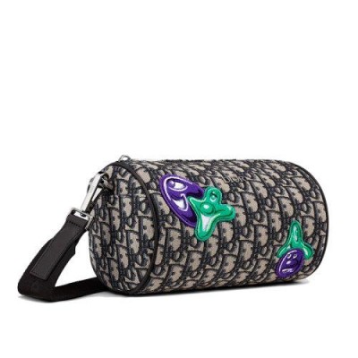 【包税】DIOR/迪奥 21秋冬新款ROLLER系列 男士米色黑色老花帆布KENNY SCHARF联名图案印花斜挎单肩滚筒包1ESPO061UAU_H10E
