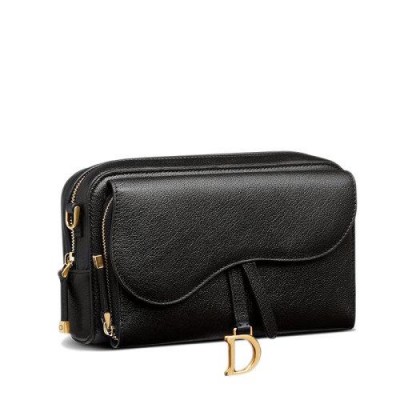 黑色山羊皮迷你手袋采用不对称翻盖和陈年金色金属制成的“ D”字形,代表标志性的Saddle系列标识。此功能性配件可容纳您的日常必需品。可拆卸和可调节的肩带可以用该系列中的刺绣微肩带代替,并且可以戴在肩膀,斜挎包或手上。