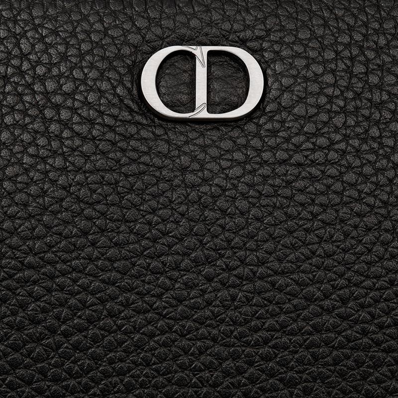 A4袋是一款精致轮廓的单品。黑色粒面小牛皮制成,正面饰有钌金黄铜CD Icon签名。它的拉链隔层有一个平口袋,可容纳您的持卡人。凭借其可移动的皮革表带,该小袋既可以手提携带,也可以滑入袋中。