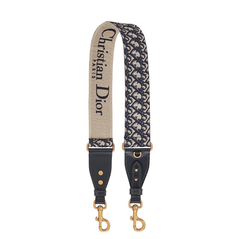 绣花肩带是独特的配件,可让您个性化一些Maison的包包。蓝色的Dior Oblique图案装饰在一侧,而另一侧则绣有CHRISTIAN DIOR签名。两端用蓝色小牛皮加固,并配有两个仿古金饰金属登山扣挂钩,可将其固定到您喜欢的包包中。巧妙地放置了一个金属环,以悬挂该系列的小型皮具创作。这款肩带可以戴在肩膀或斜挎包上,营造出非常个性化的风格。