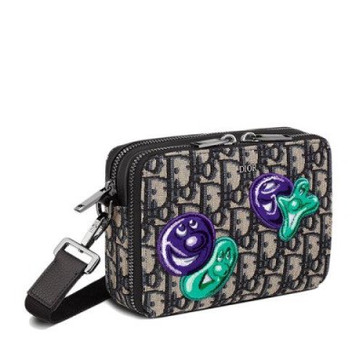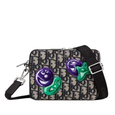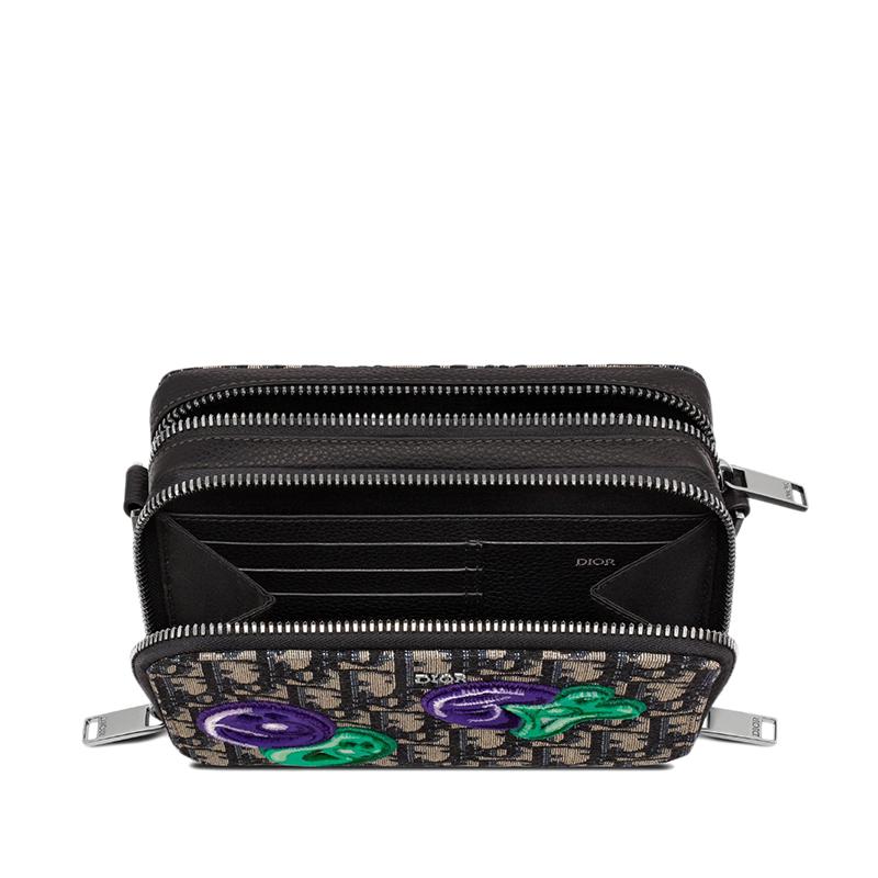 【包税】DIOR/迪奥 21秋冬新款 男士米色黑色老花帆布KENNY SCHARF联名图案印花单肩斜挎手拿相机包2ESBC119UAU_H10E