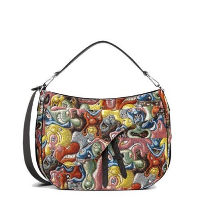 在与艺术家肯尼·沙夫(Kenny Scharf)的合作下,本季重新采用了提花帆布版本的马鞍软包,提花帆布版本采用了多色的迪奥和肯尼·沙夫(DIOR AND KENNY SCHARF)图案。前袋带有标志性线条,并带有DIOR签名,增强了其宽敞实用的格式。提手可通过可调节和可拆卸的肩带完成,以将其放在肩部,斜挎包或手中。