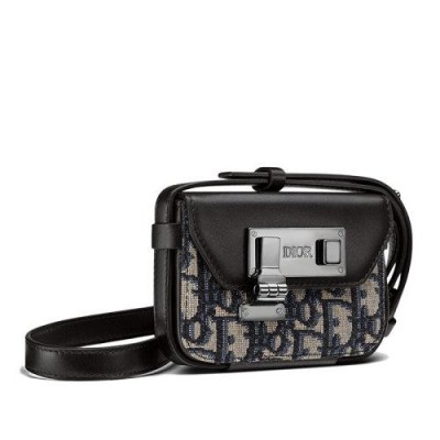 【包税】DIOR/迪奥 21秋冬新款 男士NANO米色黑色老花帆布黑色光滑小牛皮翻盖银扣单肩斜挎包2LXCA344UCT_H28E
