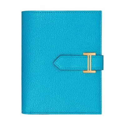 Portefeuille compact en chevre Mysore, ferme par une patte en cuir et un fermoir « H » ajoure plaque ora l'interieur : un porte-monnaie avec fermeture a glissiere, quatre poches cartes de credit et quatre poche*esFabrique en France