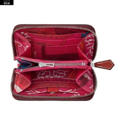 Portefeuille compact zippe en veau Epsom, double en twill de soie imprime « étriers », fermeture a glissiere argentee palladieeA l'interieur : un porte-monnaie zippe, six poches cartes de creditFabrique en France