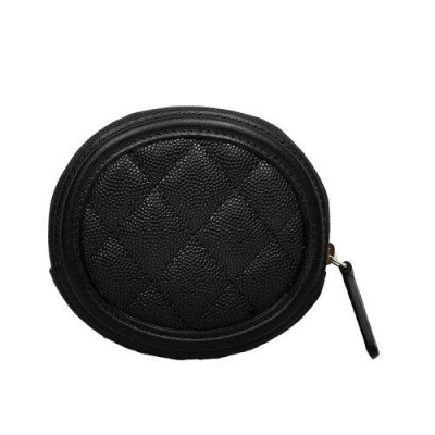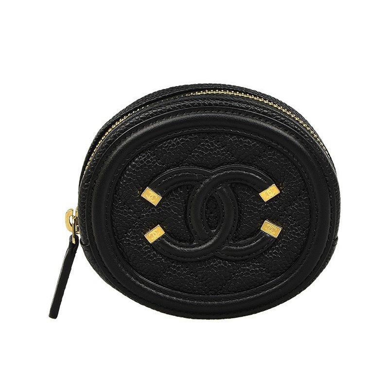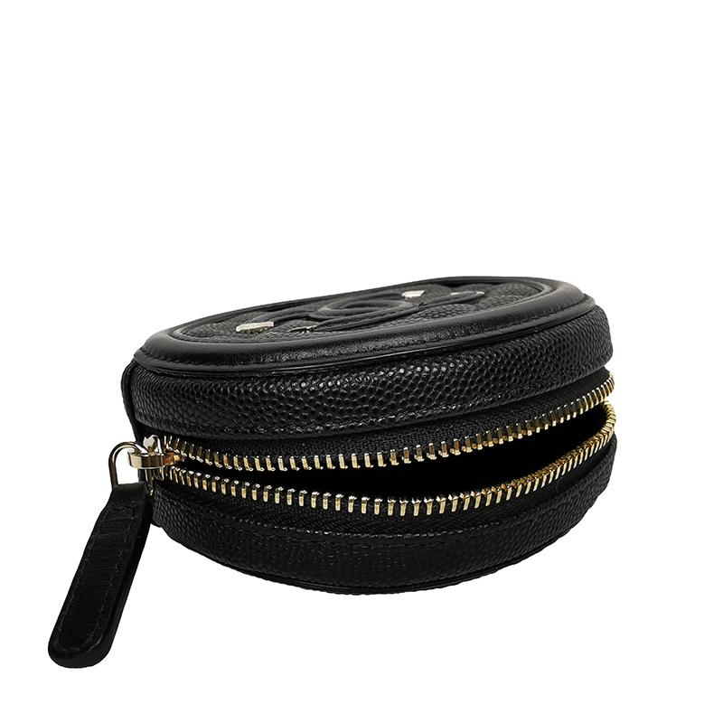 【包稅】CHANEL/香奈兒經典黑色魚子紋小牛皮雙C縫紋拉鍊圓形零錢包