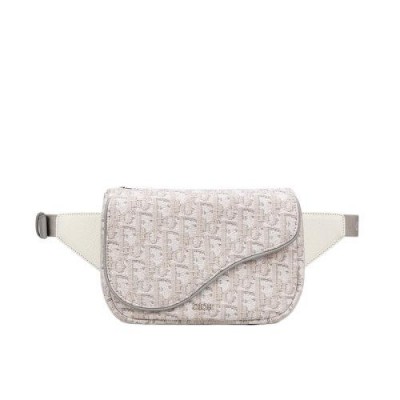 【包稅】DIOR/迪奧21春夏新款SADDLE系列男士灰白色斜紋提花帆布米白色粒面小牛皮磁性翻蓋腰包斜挎包1ADPO223YIE_H07E