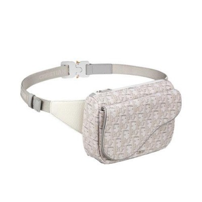 Saddle腰包是一款时尚实用的单品。这款模型采用灰白色提花帆布制成,并带有灰白色Dior斜纹图案,并采用粒面小牛皮细节进行了改进,其特色是磁扣翻盖袋,正面饰有标志性线条,以及大号拉链隔层。尼龙提花皮带和带扣的克里斯汀·迪奥(Christian Dior)签名完成了这款包,可以在腰部或作为斜挎包穿着。