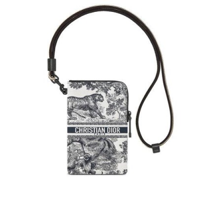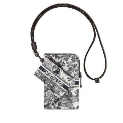 DiorTravel多功能离合器是蓝色技术面料的混合产品,展示了标志性的Toile de Jouy图案。它由两个可分离的拉链元素组成。小口袋可存放钥匙或找零,而更宽敞的口袋可存放电话。可拆卸的束带可以斜挎在脖子上,也可以单独放入袋子中。