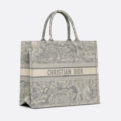 Le Dior Book Tote, une creation originale signee Maria Grazia Chiuri, Directrice Artistique de Christian Dior, est desormais un classique de la Maison. Imagine pour contenir tous vos essentiels du quotidien, il est entierement brode du motif Toile de Jouy Reverse grise, declinant le motif emblematique de la Maison a travers un jeu de couleurs inversees. Ce modele est sublime par la signature CHRISTIAN DIOR a l'avant. Ce cabas est un bel exemple du savoir-faire Dior et se portera main ou epaule.