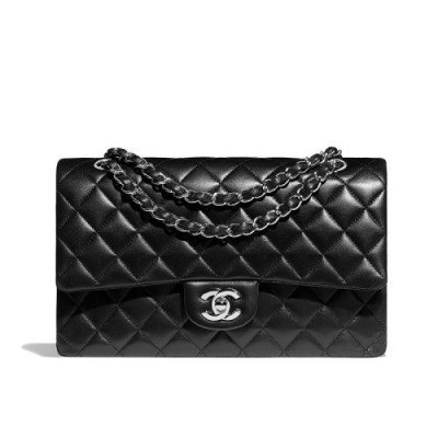 【包税】预订款2-3周发货CHANEL/香奈儿 经典款CF 女士中号黑银小羊皮链条单肩包 A01112