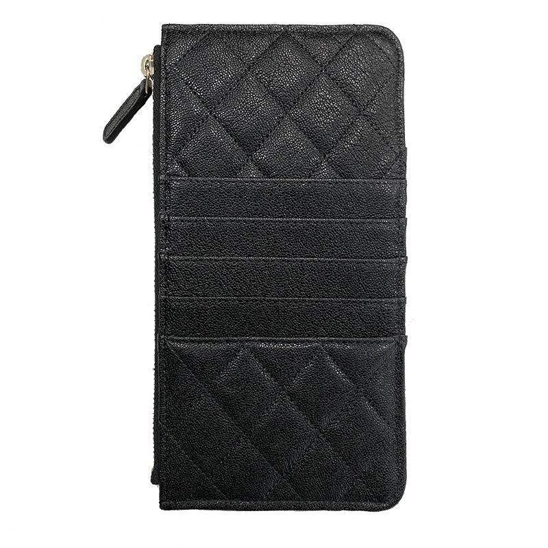【包稅】現貨CHANEL/香奈兒經典BOY系列黑色粒面牛皮魚子紋淺金扣手拿錢包