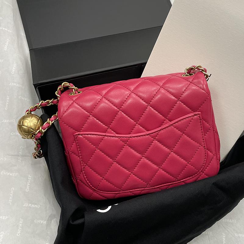 【包税】现货 CHANEL/香奈儿 经典金珠系列 女士深粉红色小羊皮金扣斜挎单肩包