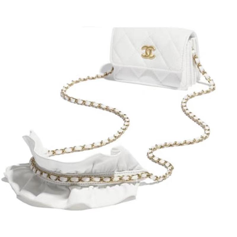 【有微瑕疵】【包稅】CHANEL/香奈兒女包卡包單肩包帶肩花白色