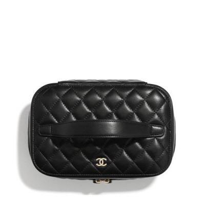 【包税】预售两周 CHANEL/香奈儿 经典款vanity系列 黑色棱纹小羊皮金色金属手提化妆包A80913Y04059C3906