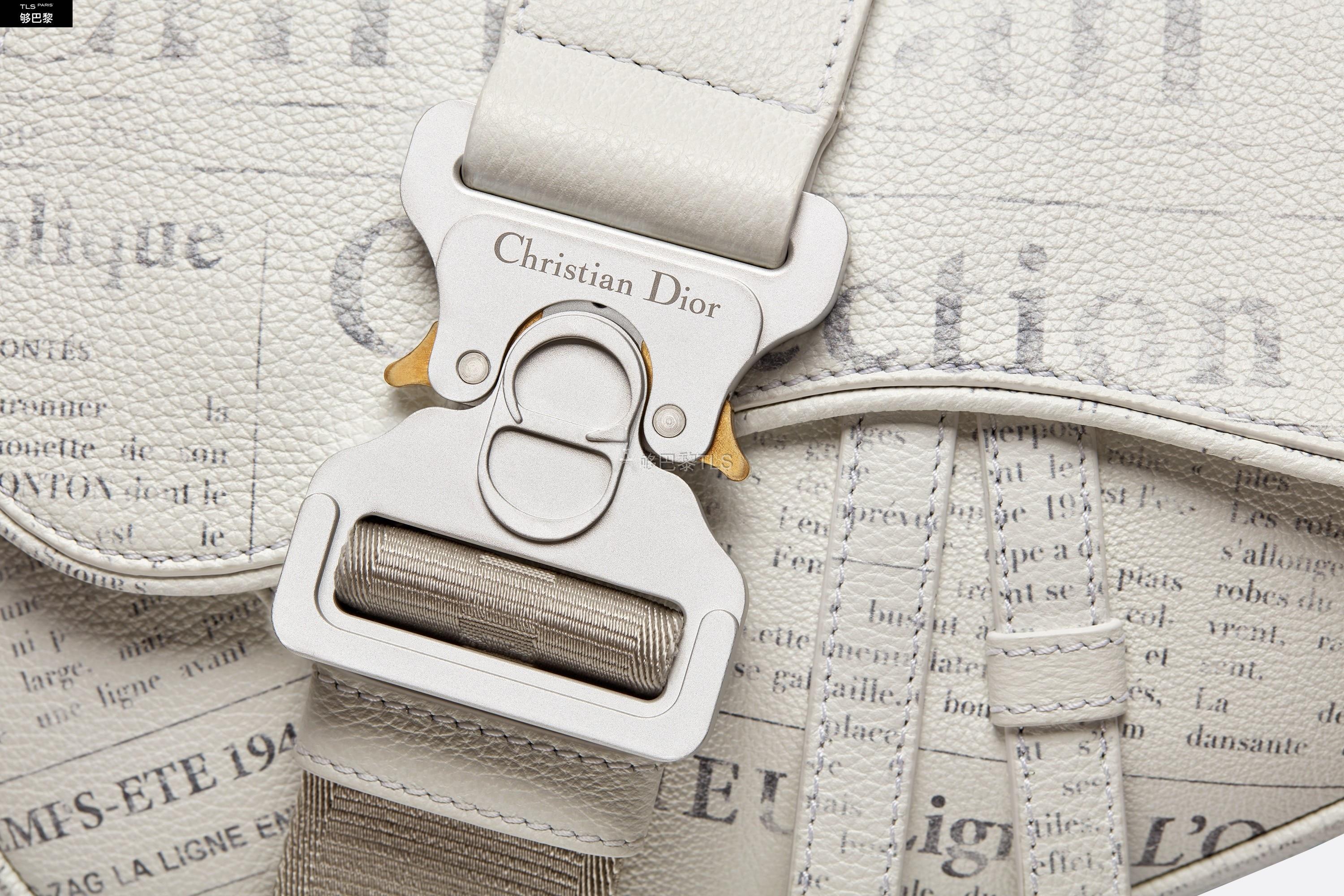 这款白色粒面牛皮革马鞍包将 DIOR AND DANIEL ARSHAM 合作款的时尚姿态与复古的报纸印花结合,向 Dior 的约翰·加里亚诺时代致敬。可调节“Christian Dior”提花图案肩带饰以工业风的铝扣,典型的马鞍包造型彰显这件单品的经典外观。内部隔层设计,可收纳手机、钱包、耳机等日常用品。